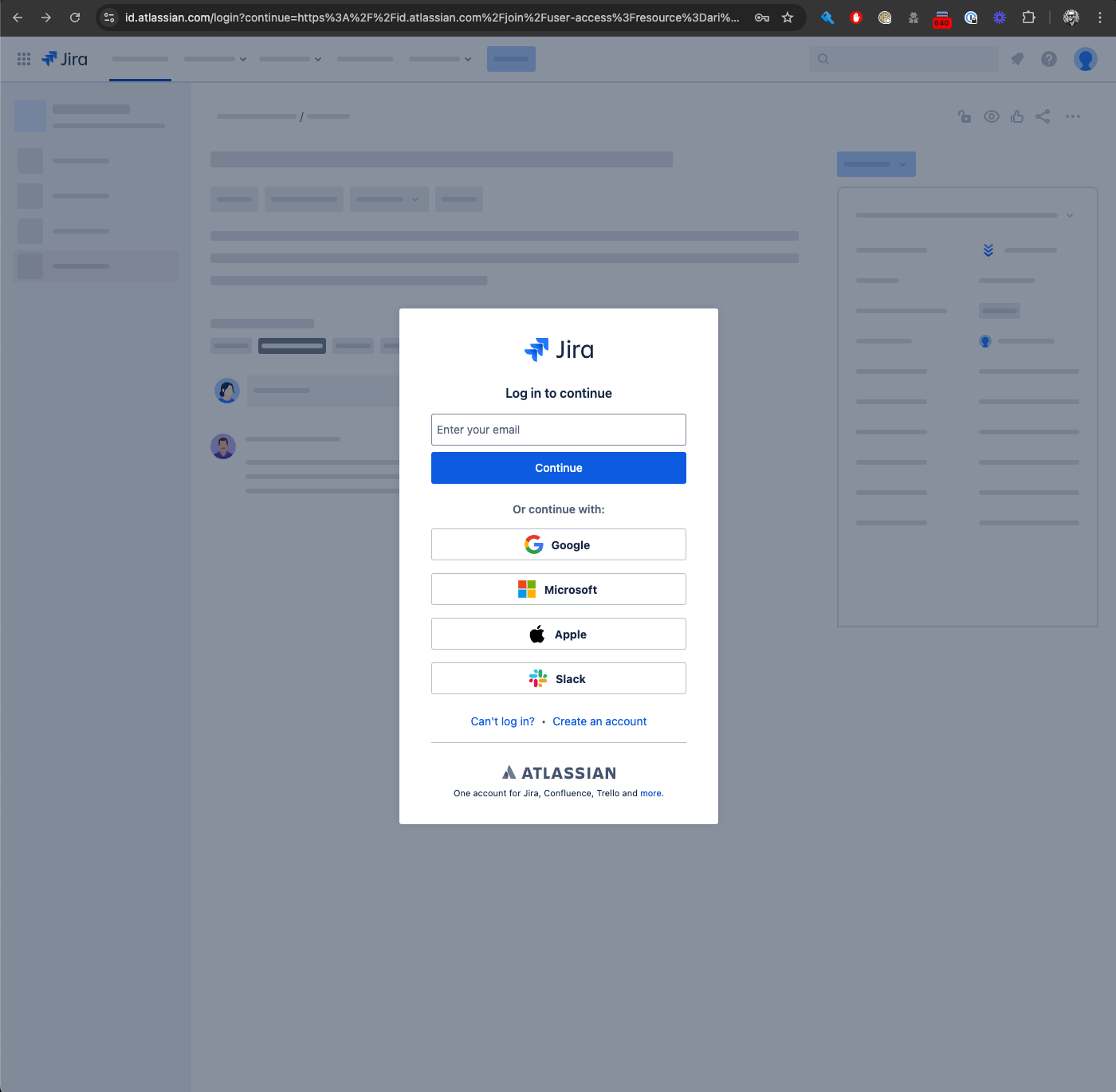 Atlassian captures the referring domain as a URL parameter, which lets the login screen render a subtle preview of the product you’re returning to.